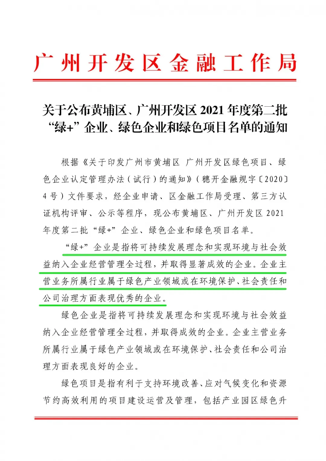 因此,经广州市开发区金融工作局对星帮尼定期考察后,再次给予星帮尼“绿+企业”的荣誉认证。